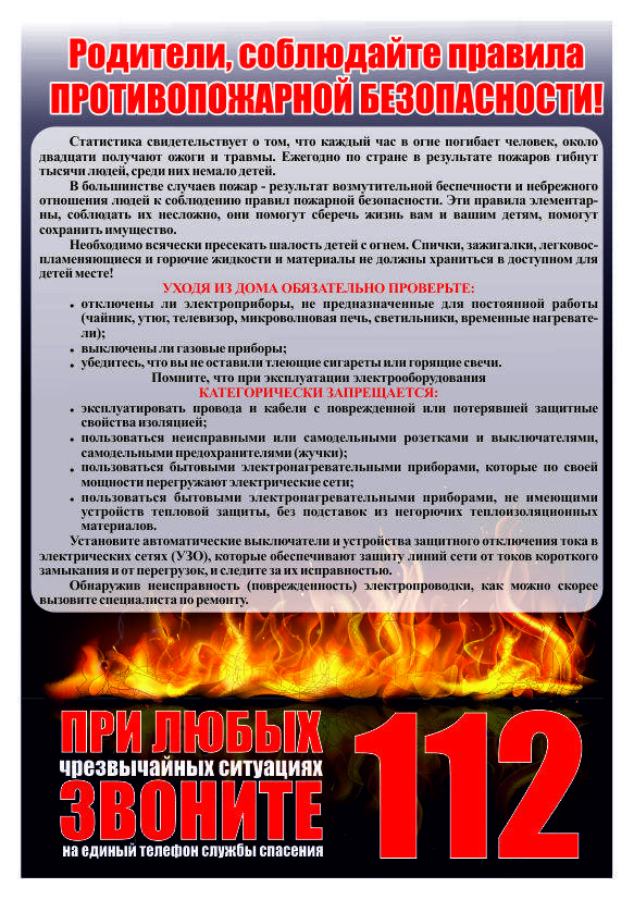 Родители, соблюдайте правила противопожарной безопасности